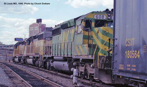 One normally thinks of Chicago as the great interchange point between eastern and western railroads. St Louis is also a great interchange point, but split by the Mississippi River. In the 1970s, eight of the major eastern roads had terminals on the “east side” in the East St Louis Illinois area, four of the major western roads terminated on the west side in St Louis, and several transfer short lines provided interchange between the majors. When a new job brought me to the area in the late 1970s, there was lots to see, but starting a career and raising a young family took precedence over railfanning for quite a while. Here are some vignettes from those days.